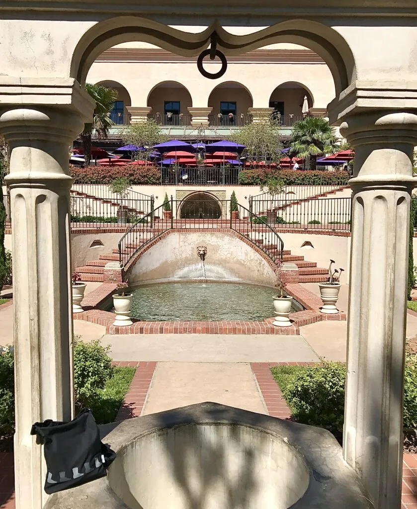 A ‘wishing well’ & fountain are behind the House of Hospitality, which includes Balboa Park Visitors Center & Gift Shop. Wedding services are often held in this picturesque outdoor setting that overlooks the park & downtown SD.