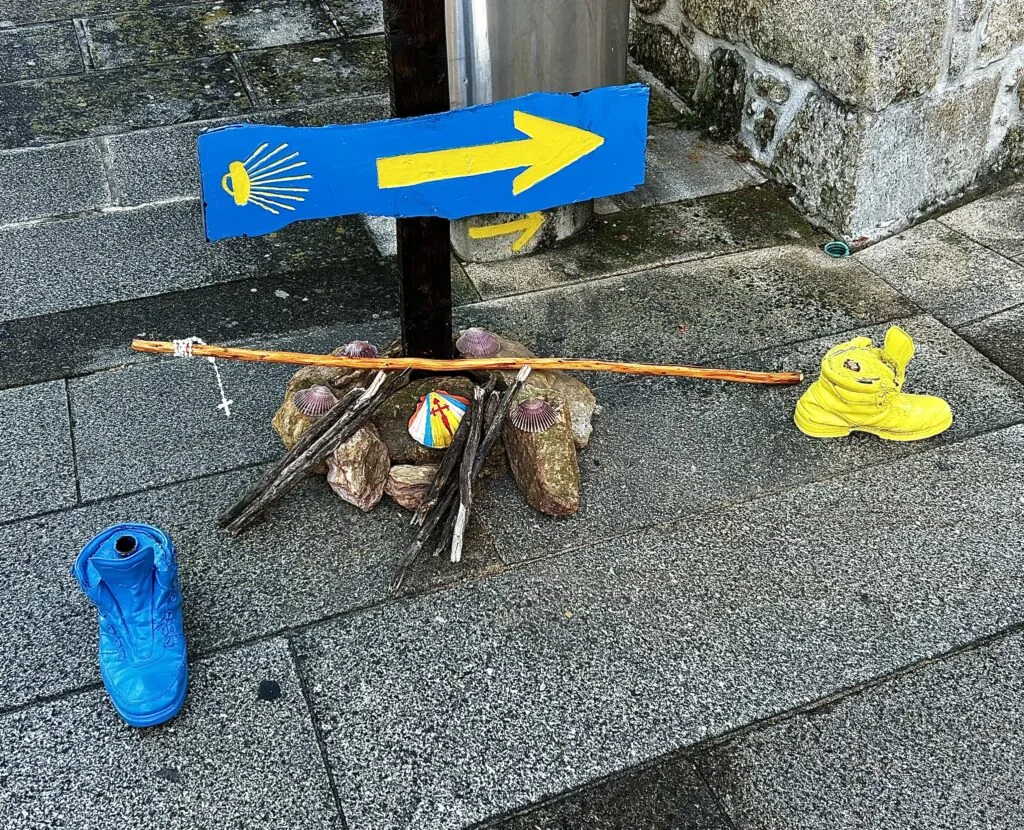 Along side streets items were displayed for sale, including pilgrim walking sticks.