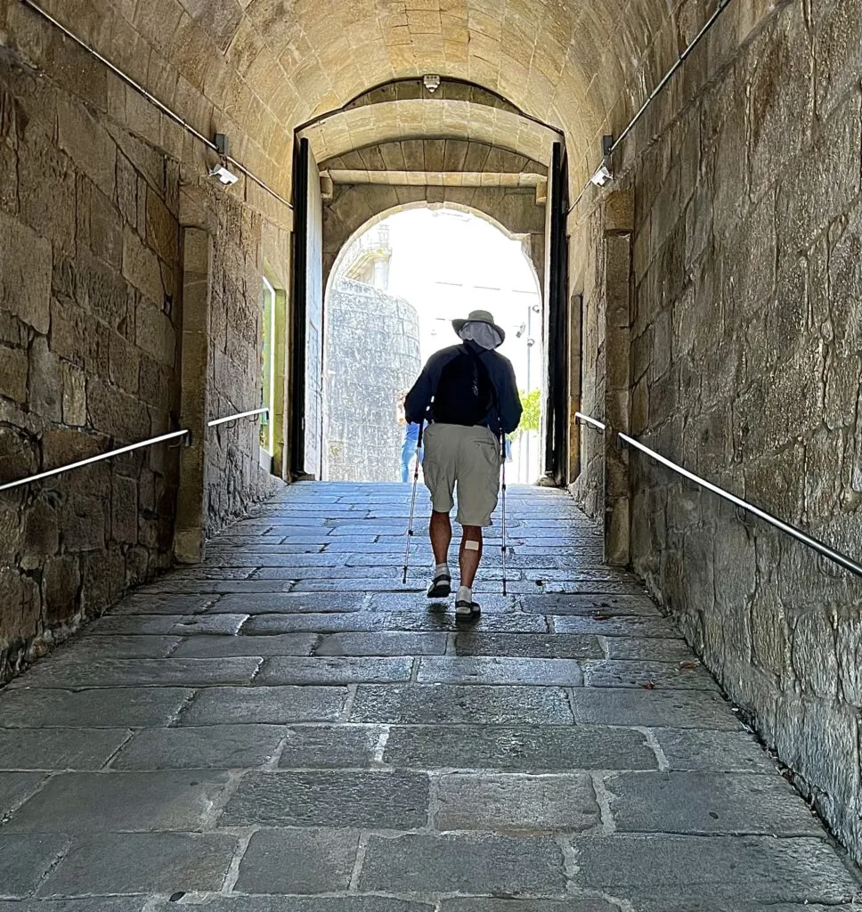 On some days Dad chose to walk in sandals to give his feet a break from hiking shoes. For more info about footwear, including a tip on how to avoid blisters, check out Camino Packing. Keeping feet happy is essential on a Camino!