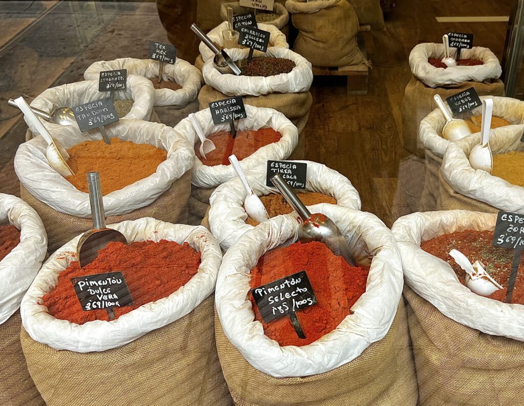 Spices displayed in a store window