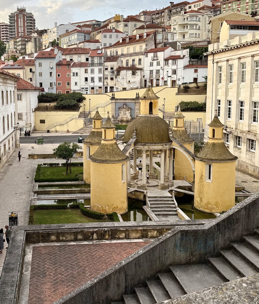 Behind the church stands Jardim da Manga, a Renaissance structure featuring a fountain and a cafe across from it — a peaceful setting for a sightseeing break.