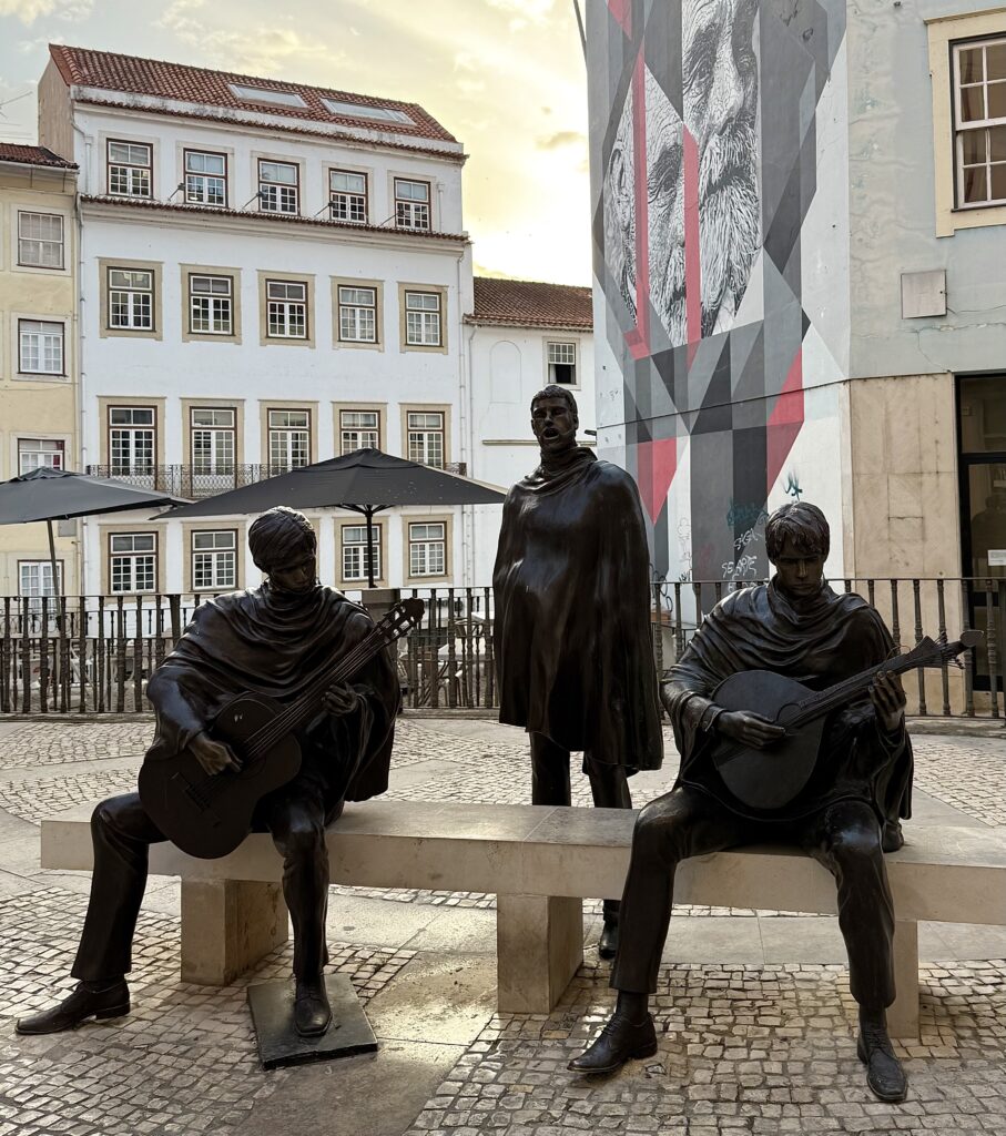 The Portuguese musical tradition fado is typically sung by women in Lisbon, but in Coimbra it’s sung by men. Song themes are inspired by poetry, philosophy, & history tied with the university. A sculpture dedicated to fado also shows a guitar style that originates in Coimbra.