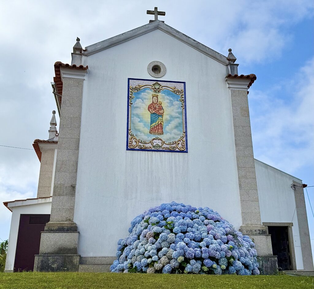 Hydrangeas were blooming in the back of 19th c. Igreja Parochial Lamas do Vouga.