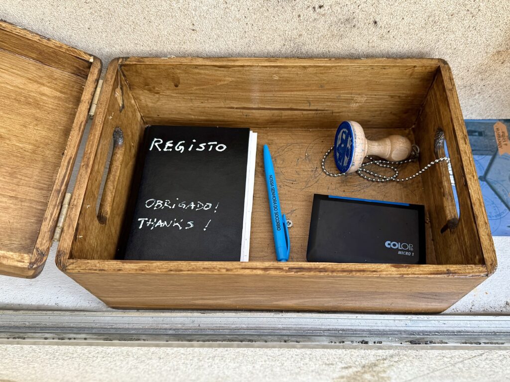Day 9 to Sao Joao da Madeira: While leaving Albergaria-a-Nova in the morning I stopped at Capela de Nossa Senhora da Alegria, which offered a sello for walkers. The stamp box was in a niche outside and contained a booklet to record your name & address.