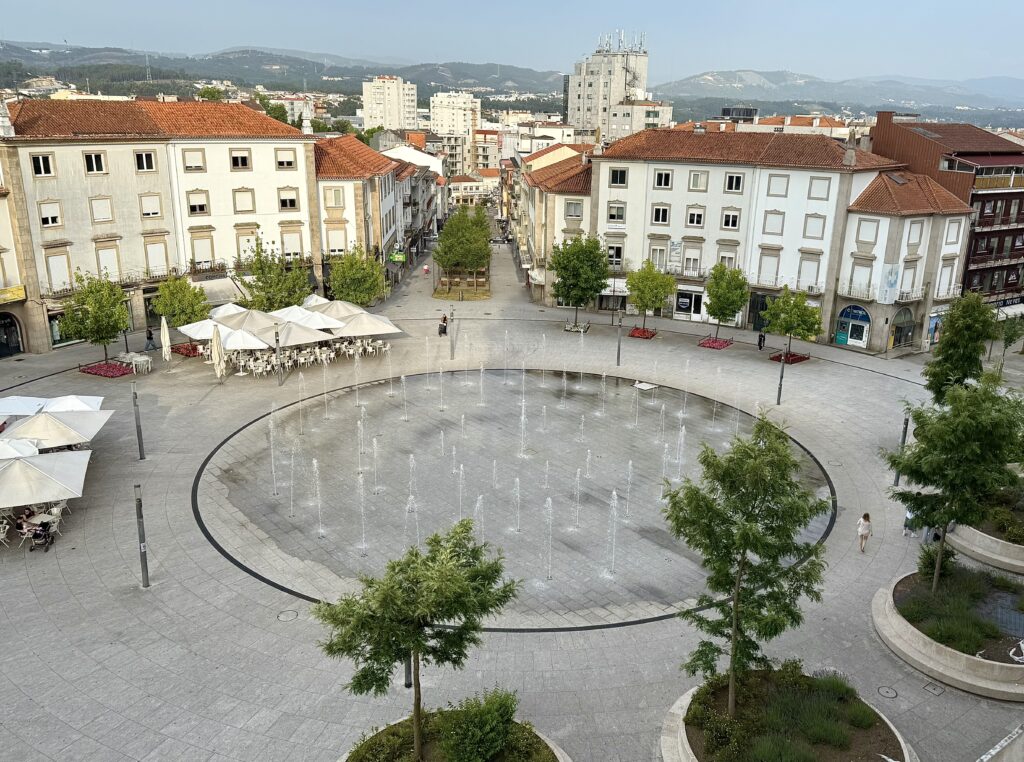 View from my hotel in Sao Joao da Madeira — the plaza’s water fountain spouted intermittently.