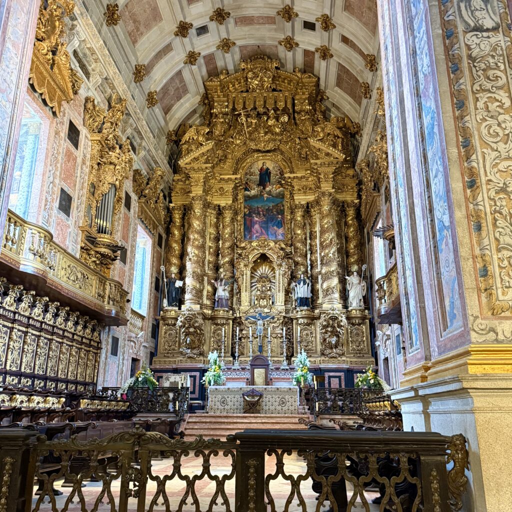 At the Cathedral I received my last sello and afterwards explored the church complex, which originated in the 12th c. The Baroque altar features gilded wood and statues of saints & angels.