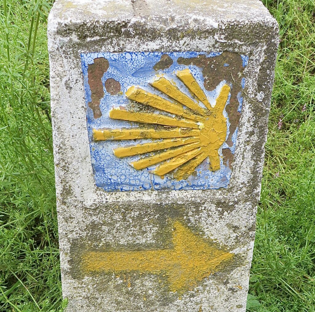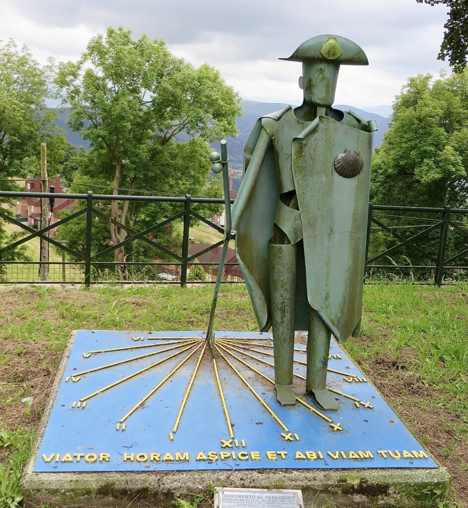 Near Tineo a metal pilgrim stands along a walkway called the Paseo de los Frailes, or the Friar’s Walk. A shell sundial shows a Latin phrase: “Wayfarer look at the hour, & continue on your way.”