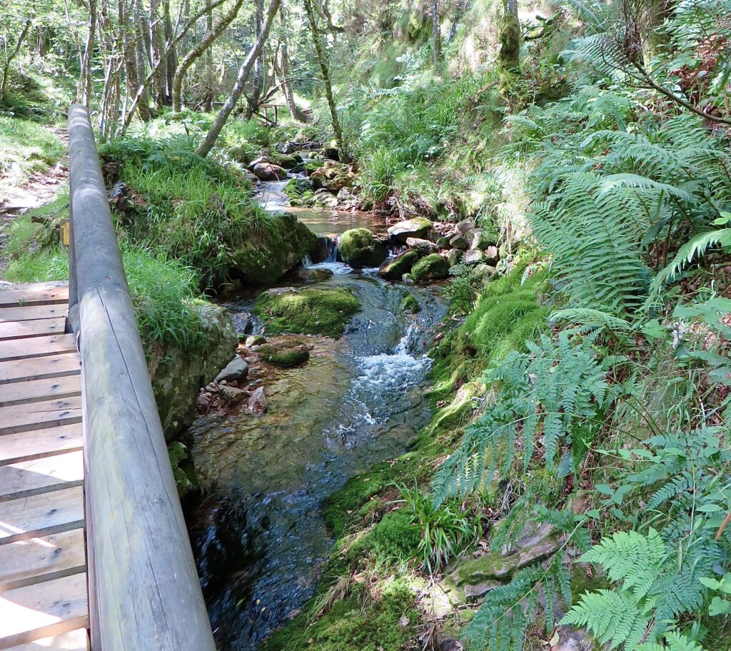 The other option (shown above) is over 19 miles & begins at a lower elevation; it then ascends to meet the Hospitales by the peak. This path can be walked in 2 days with a stay in Pola de Allande.