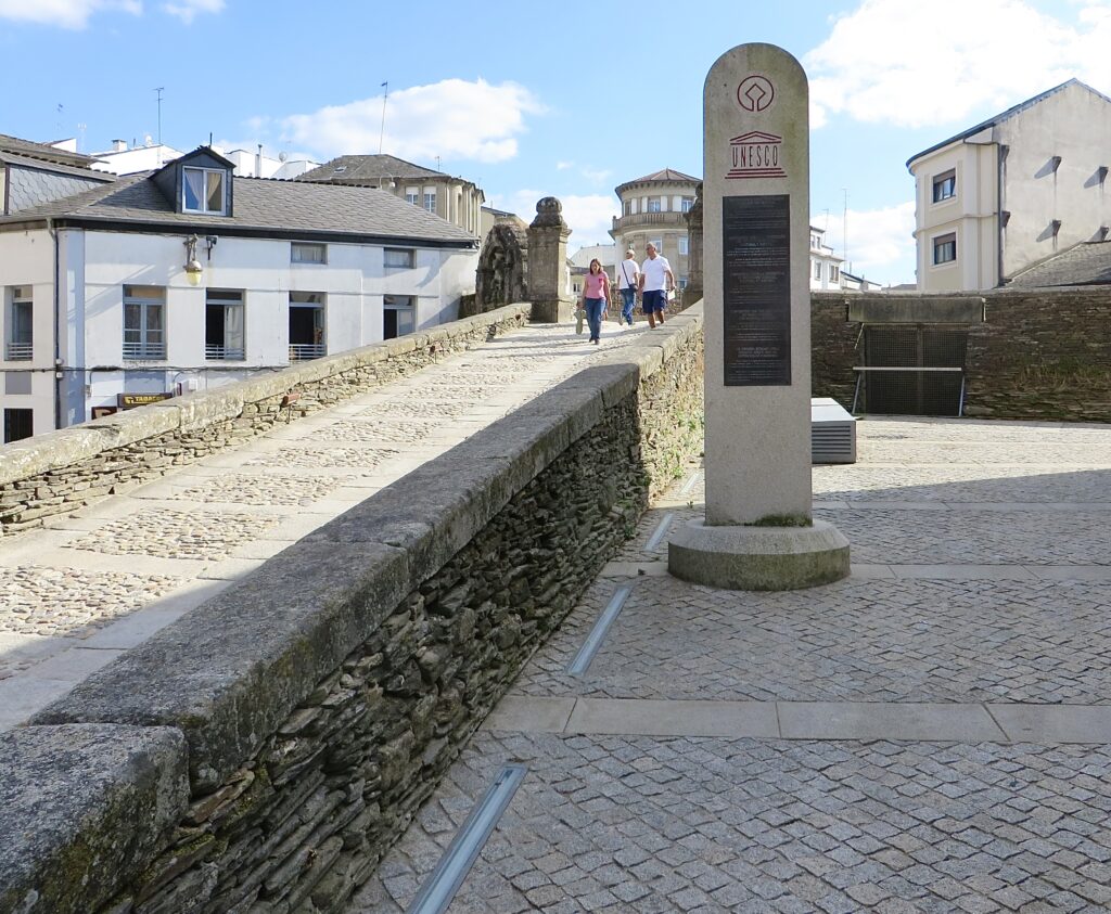 The city of Lugo features an intact 3rd c. Roman wall that encircles the Old Town. The main entrance ramp has a UNESCO World Heritage site sign.