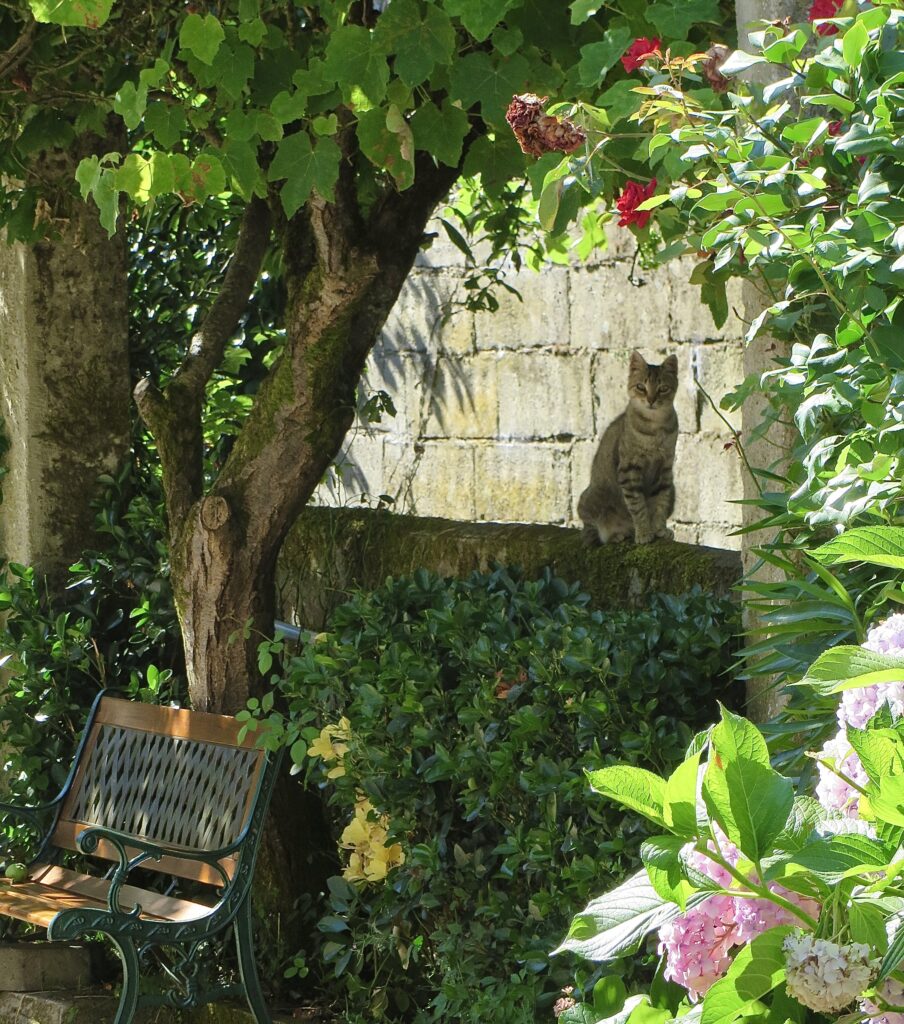The chapel’s open door invited walkers to look inside (unusual since most churches in Spain are closed except for Masses). The lovely & simple interior included whitewashed walls, flowers on the altar, and wood ceiling rafters to help support the red tiled roof.