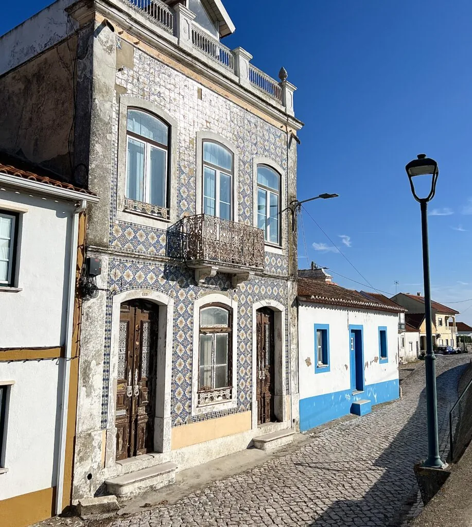 In the morning on Day 4 I Ubered back to the airport restaurant & began the trek to Santarem. The first small town from there was Reguengo with a cobblestoned street & quaint abodes.