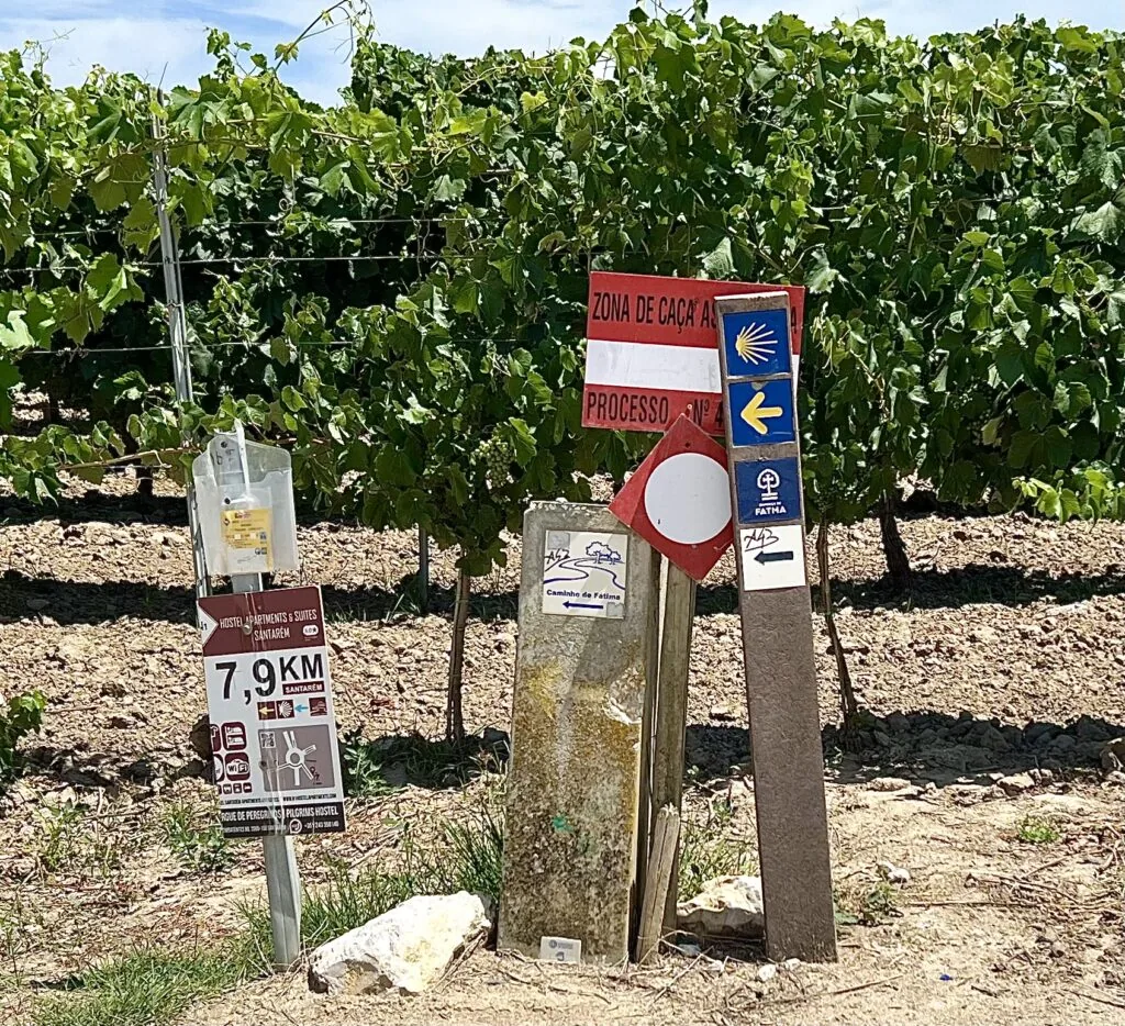On Day 3 I left Vila Franca in the early morning. It was going to be hot and another ‘shuttle’ day. The plan involved walking further than my lodging stop of Azambuja, then Ubering back to that town; in the morning I’d Uber to where I left off. Thus, the fourth day’s trek would be a shorter distance to the next destination, Santarem. Fortunately, all went well, & the mileage divided up into 17 miles for the stay in Azambuja and 15 miles to Santarem.
