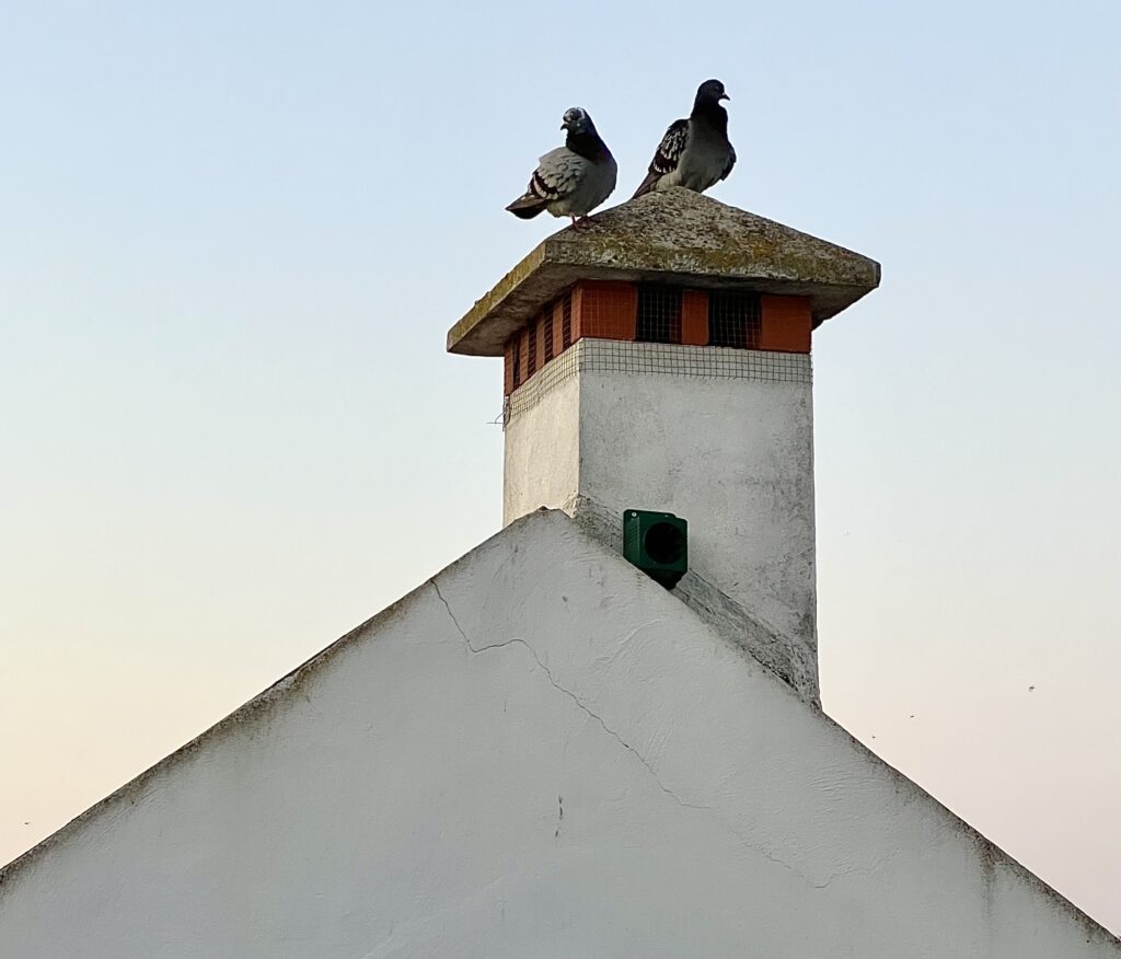The early morning view out my hotel room’s window in Santarem — pigeons were up & ready for the day.