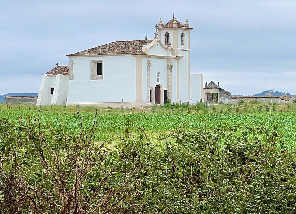 On the edge of Azinhaga 16th c. Igreja de Sao Joao da Ventosa stood in a field with not many other buildings around it. The church was associated with the oldest basilica in Rome and visitors were granted special indulgences. Apparently it’s now empty so may no longer be used (?).