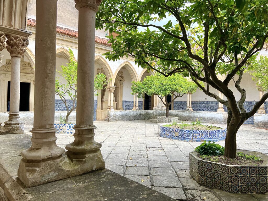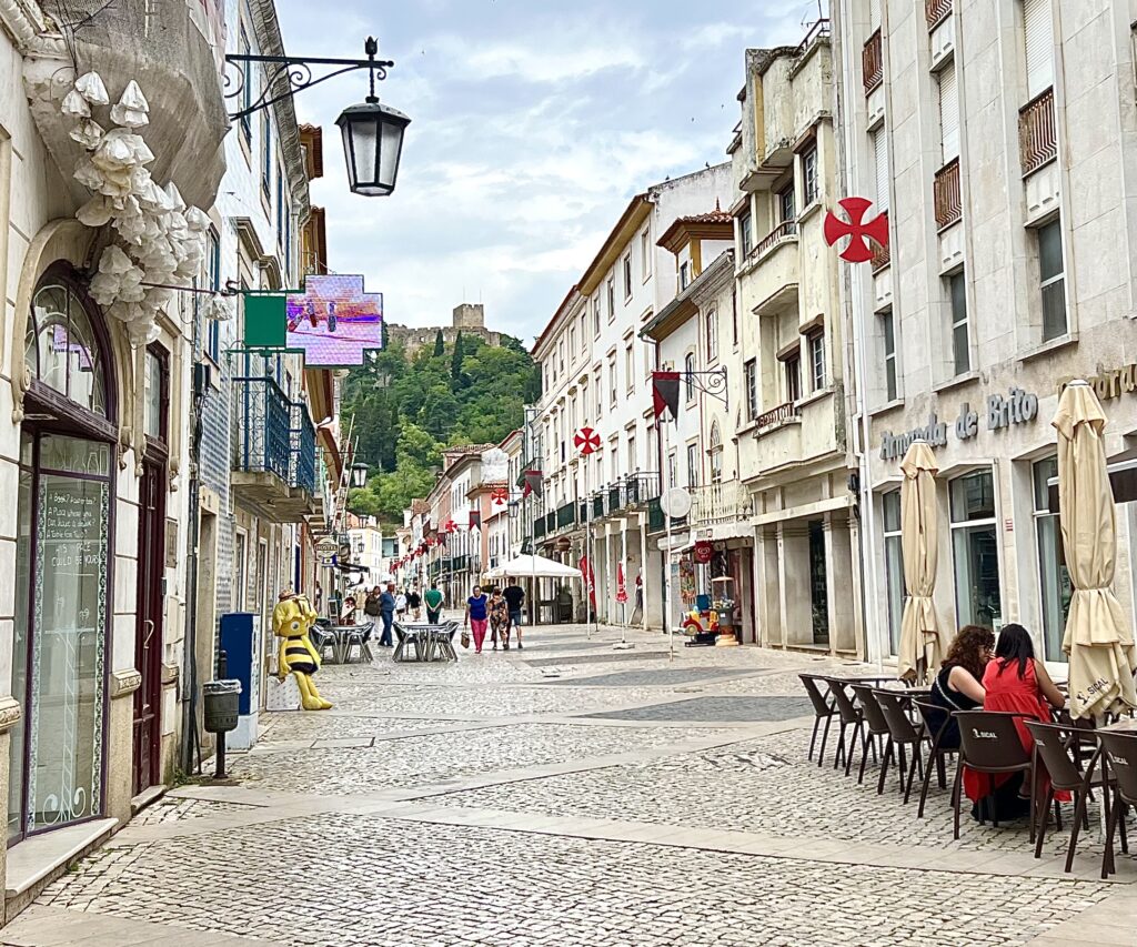 On Rua Serpo Pinto the buildings included red crosses associated with the Knights Templar. On the hill in the background stands 12th c. Castillo de Tomar, built by the Templars and designated as a UNESCO World Heritage Site. The next morning I climbed up the stairs to this historical complex and spent part of the day exploring it.