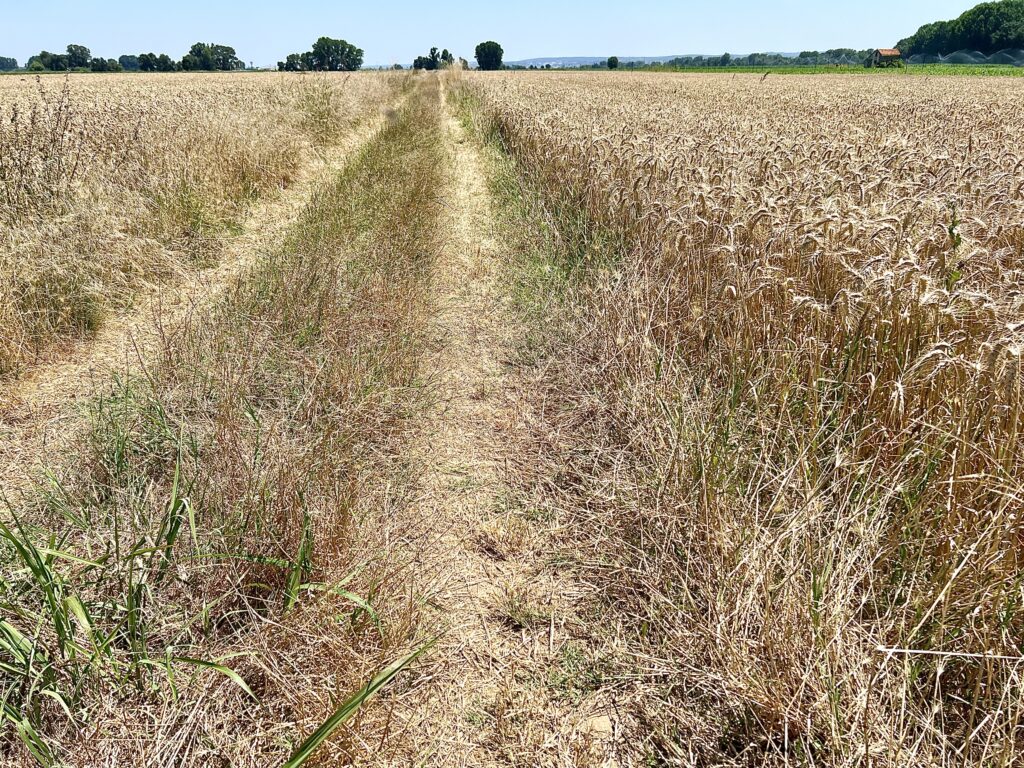 The Road by Pombalinho literally went through a wheat field — it felt very medieval to be walking in what the pilgrims then must have encountered!